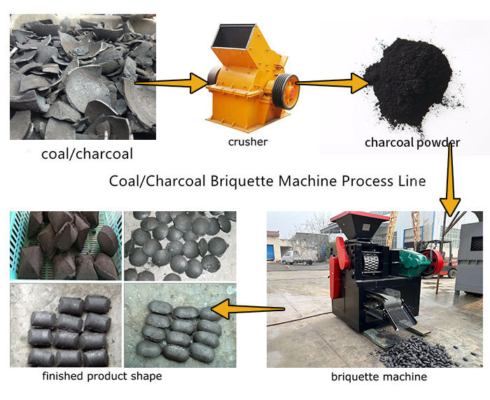 We supply small capacity machine such as 1tph, 2tph, 5tph, etc. and larger capacity 15tph, 30 tph, 5 tph, etc. We also provice charcoal briquette plant if you need, the flowchart of charcoal briquette line is from charcoal crushing, feeding, mixing, press briquette, drying, to output briquette.