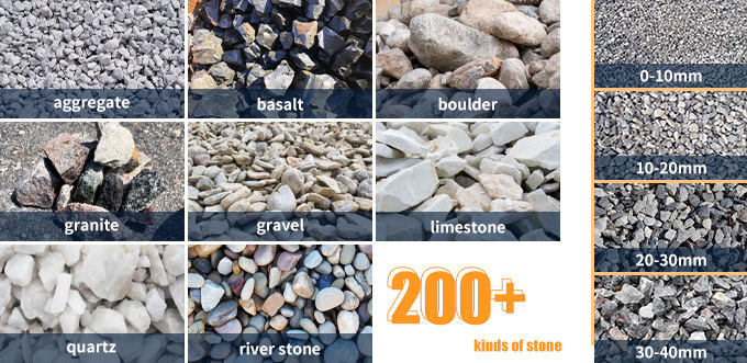 Stone crusher is one kind of stone crushing machine that can directly crush the material with 600-8000mm size to less than 25mm. It is widely used to crush all kinds of stones with soft, medium and high hardness such as gravel, rock, pebble, basalt, aggregate, barite, limestone fluorite, fledspar, dolomite, etc. It can be used for primary/secondary/fine crushing ofthe materials. Customized Output Size: 0-5mm, 5-10mm,10-30mm, 40-50mm, 1/2 inch, 3/4 inch, G1, G2, G3, sand and dust. etc.Application: road construction, sub-base, concrete work, brick and blocks, etc.